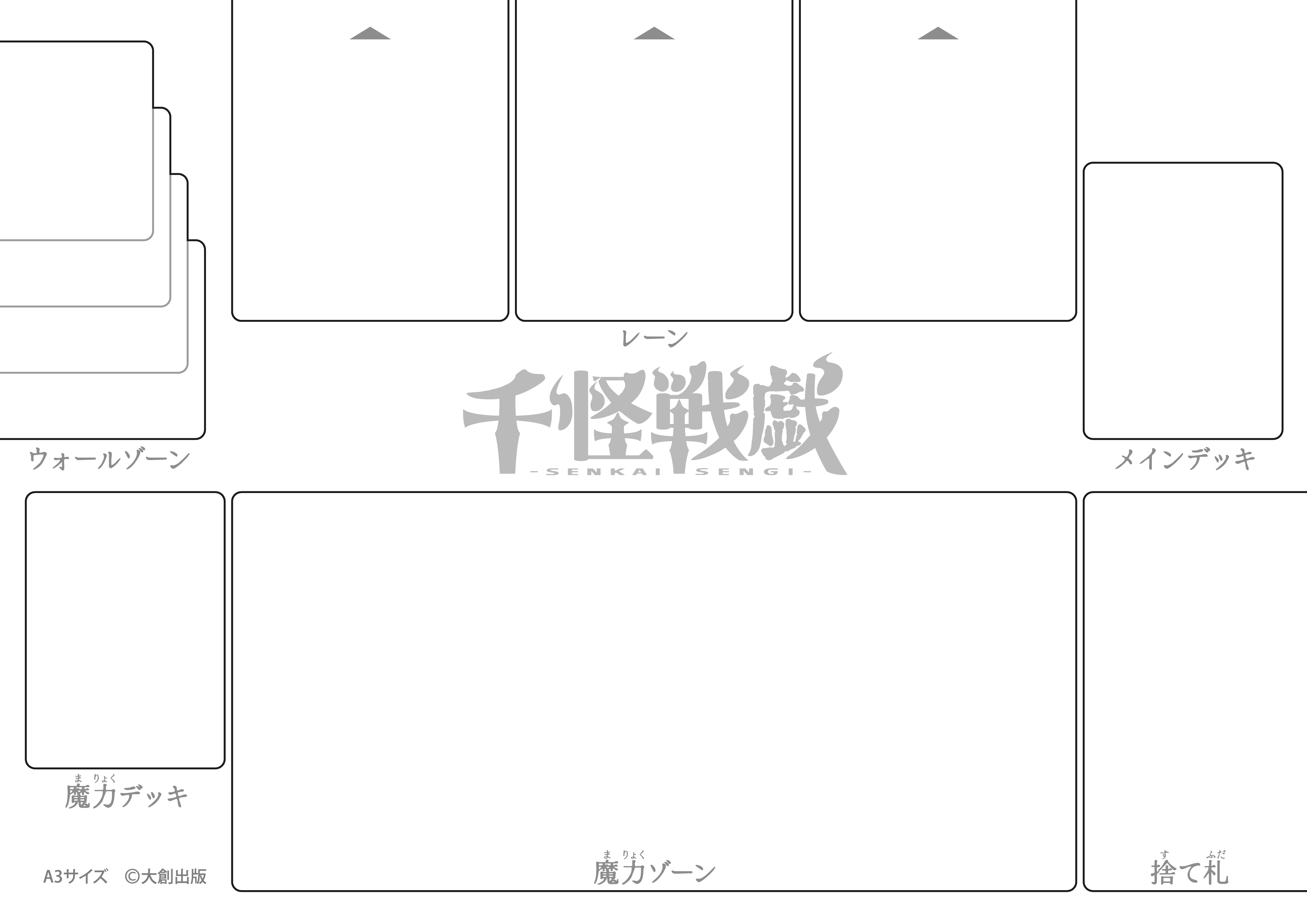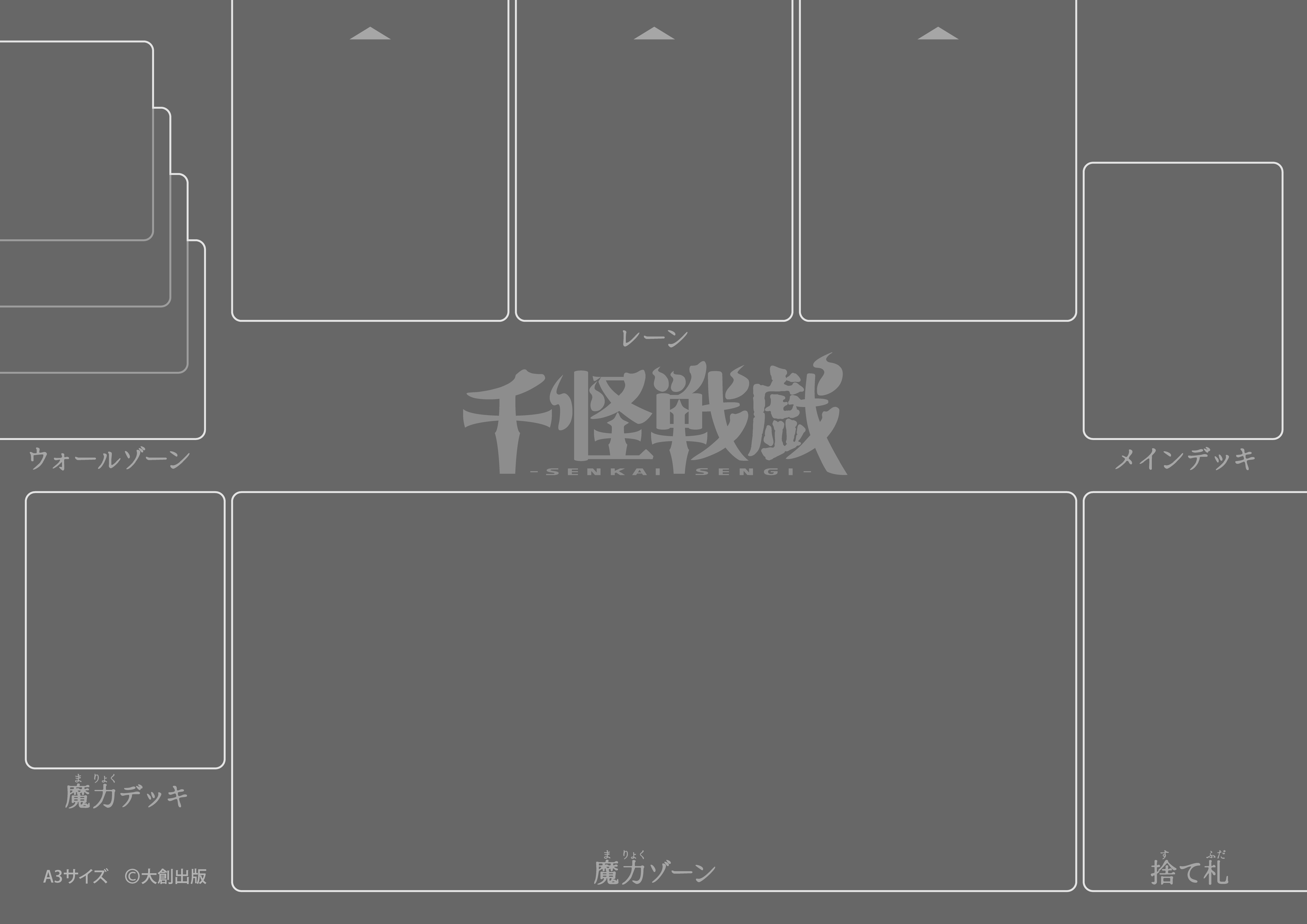 プレイマットの作成に使える画像データです。コンビニのマルチコピー機を使うなどして紙に印刷してお使いください。データをコンビニのマルチコピー機に入力する方法や操作方法などは、各コンビニのマルチコピー機の操作マニュアルを参照してください。用紙はA3サイズです。